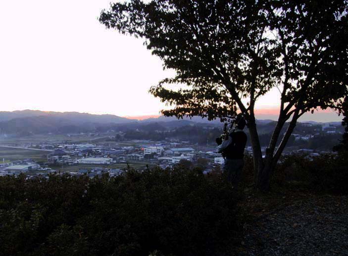 東和の街を見下ろす舘山にある土沢城址公園にて、夕日を浴びながら…