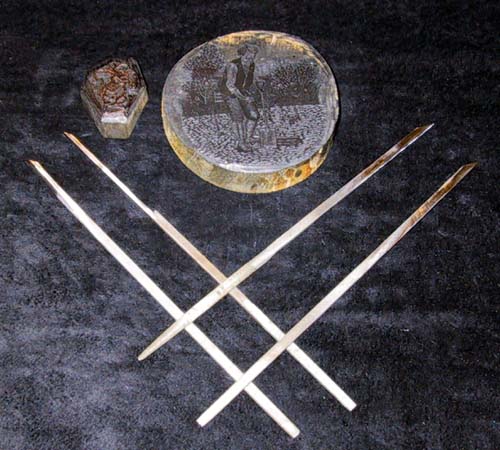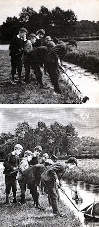 は、撮影された写真を印刷物にするためには、それらをエングレイバーの手によって克明に木口木版に写し取って版下としていたわけです。 木口ですから、一枚の版木はそれ程大きなものは取れませんので、大きな写真を印刷したいときは別々に彫った版木をいくつもボルトで繋いで印刷機にかけま した。ポール・マーチンが1890年11月29日号のイラストレイテッド・ロンドン・ニュースの為に作ったおよそ60cm×80cmのものなどはなんと 30のブロックを繋ぎ合わせたものだということです。 この本でもう一つ私の目を釘付けにしたのはそのような実例として、ポール・マーチンが自ら撮影した写真とそれを木版画にしたものとが並べられて掲載されている箇所でした。→ それは子供達が小川で遊んでいる写真ですが、確かに当時の写真の不鮮明な画像よりも、それを木版画に仕立てたものの方が段違いに鮮明で印刷物に耐えうる 画像なのです。その時点では版下作成技術うんぬんの前に写真機の解像度自体がまだまだその程度だったのですね。 ですから、ビクトリア時代の各種のカタログなどがみんな木版画だったのはある意味では必然だった訳です。 さて、私はポール・マーチンがエングレイバーとして作業している写真に写っていた彫刻刀、つまりはビュウィックが wood-engraving に用いた彫刻刀を求めて神田の有名な画材屋「世界堂」行きました。そして、確かにそれと同じものを見つけました。それは銅版画に用いられるビュランという彫刻刀だったのです。 ただしお値段は1本6000円以上。LPレコードが2000円、レッド・ツェッペリンの海賊版が7000円の時代ですが、どちらにしてもとても手が出る 訳がありません。それに、最低限必要となる彫刻刀は、極細の線を描く刀、大小の丸刀、大小の平刀、そして、特徴的なのが細い平行線を描き出すための先が数本の山谷になった刀、というわけですから、それだけで一財産になってしまいます。 でも、それで諦めるような私じゃありません。 なんと私はそれらの彫刻刀を全て手作りすることにしたのです。材料は金属用のやすりです。これなら東急ハンズで1本100円位で手に入ります。金属用の やすりといっても使うのはやすりの部分ではなくて、手元の方。そちらは焼き入れがしていないので、まずはそれこそやすりで大まかな形に成形してから焼き入 れをしてから砥石で研ぎ上げ彫刻刀にするのです。