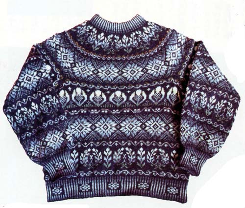 ブリテン諸島の編物(1)3rd May 1985 長い間ごぶさたしていました。あっという間に春のFolk Club Nightの日になってしまいました。 実はこの間、私はとても面白いことをして過ごしていました。というのは、昨年暮れから今年1月にかけて急に編み物に懲り始め、ベストとセーターをそれぞれ1着づつ編み上げていたのです。それまでは、奥さんが隣で編んでいるのを指をくわえて見ているだけで、とても自分ではできないと思っていたのですが、何の拍子か突然やってみる気になって始めてみると、これが何とも面白くてやめられなくなってしまったのです。正月休みなどは、どこへも出かけずに2人でせっせと編み物に熱中していました。もっとも、私がベストを編む間に彼女はワンピースを編んでしまいますし、セーターを編む間に、帽子付きのハーフコートを編んでしまう、という程のスピードの違いはありますが…。ブリティッシュ・ウールで編み物をしながらトラッドを聴いていれば、冬の夜など最高にトラッドな気分に浸ることができます。