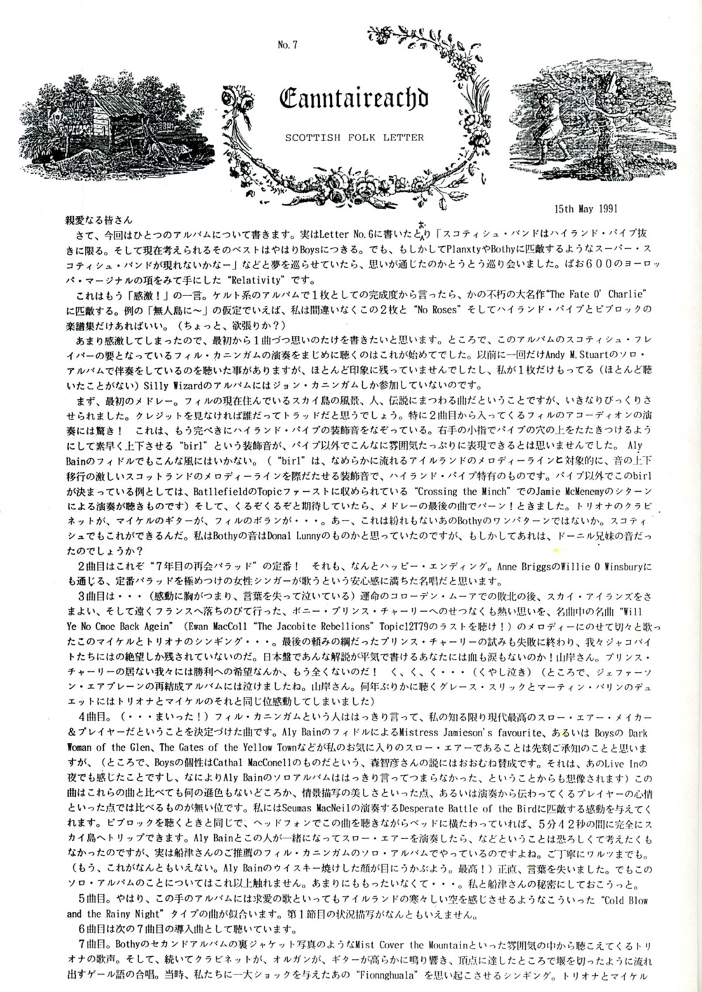 7曲目に関する記述「当時、私たちに一大ショックを与えたあの "Fionnghuala" 」:The Bothy Band のセカンドアルバム "Old Hag You Have Killed Me" に収録されているコーラス・シンギングによるマウスミュージック。これを聴いた当時のトラッド・ファンは皆一様にぶっ飛んだ。