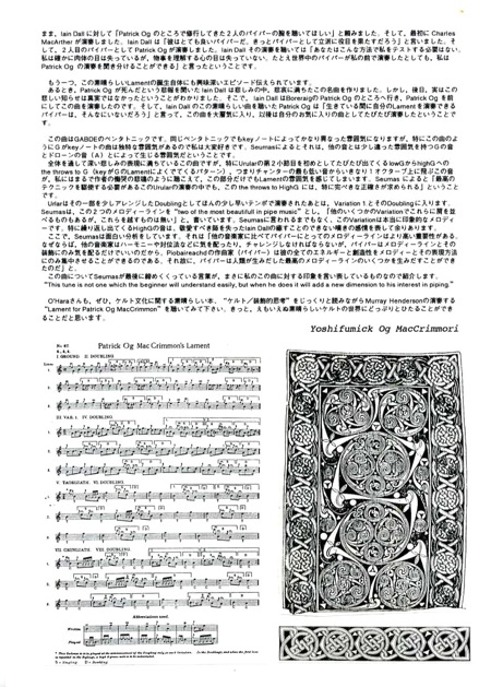 そうです、このよ うなケルト人の《装飾的思考》というものは、まさにピーブロックの音楽様式そのものではないですか。本当に目から鱗が落ちたという感じでした。この本の中でさまざまな角度から繰り返し説明されるケ ルトの《装飾的思考》に関する記述によって、私には15〜16世紀のスコットランドで確立されたピーブロックという 音楽形式と、古代からのケルト文化との関係がようやく見えてきたような気がしました。