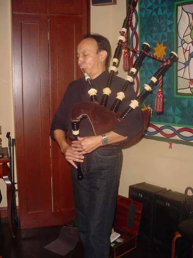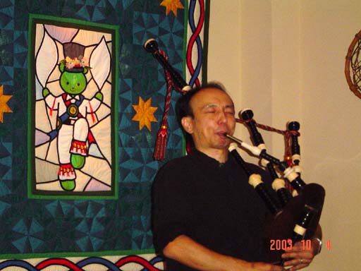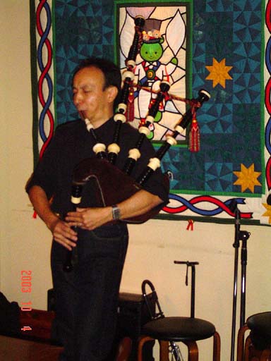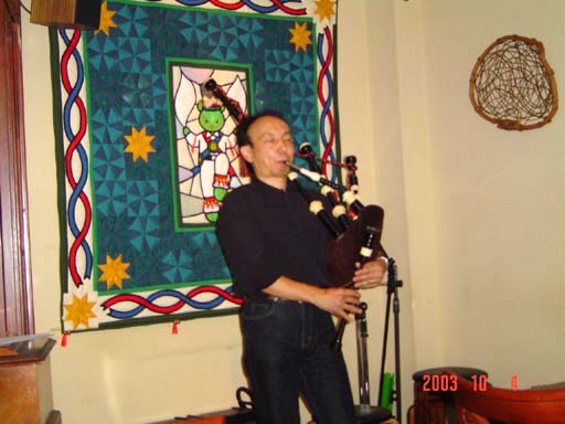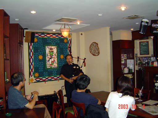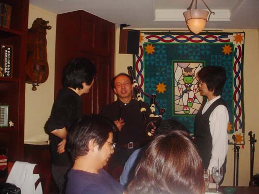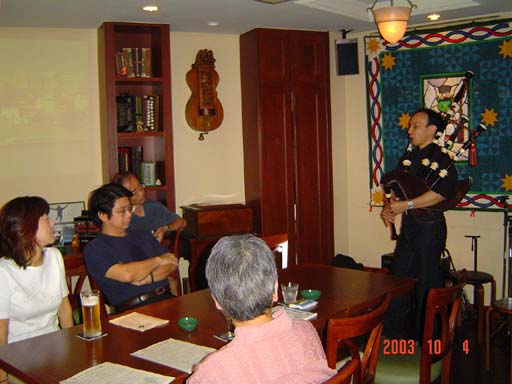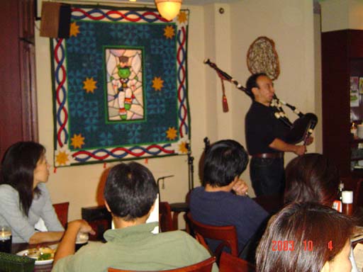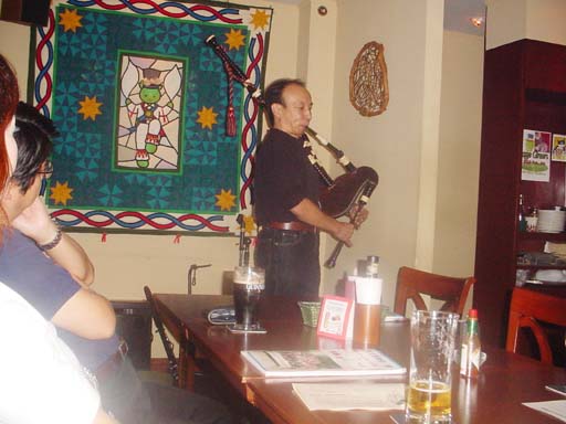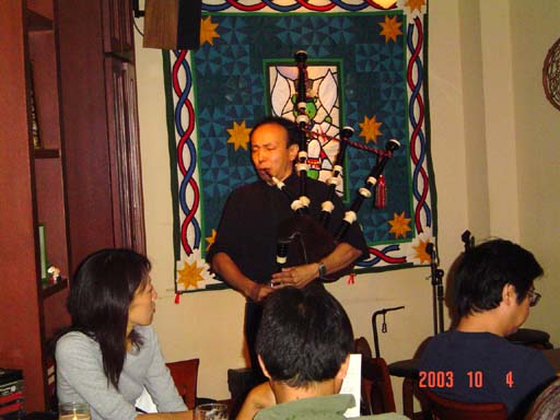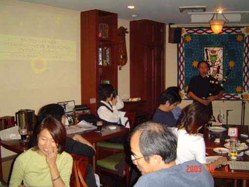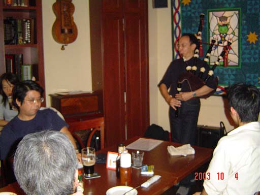 さて、10月4日、早朝からML上で中年のおじ様方のメールが飛び交う中、下北沢の「緑の村」でパイパー森バグパイプ