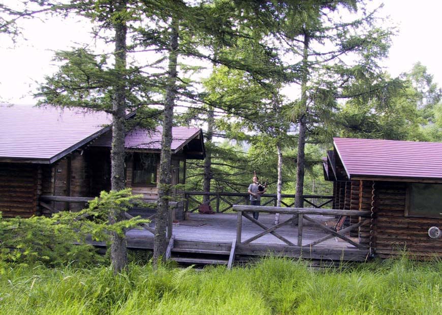 今年は、我が家がこちらに来た途端に全国的に前線が繰り返し到来し雨模様が続き、気温も下がってすっかり夏が終わってし まったかの如く。ここ蓼科でも 2003年の異常気象の夏と同様(今年の場合は既に8月も下旬ですが…)に雨がちで気温も低く、毎朝暖炉をガンガン焚い て部屋を暖める始末です。でも、な んせ山の天気なので、晴れる時はそれなりにカーっと強烈な陽が刺して爽やかな夏の陽気になります。 ところで、2005年7月に 書いたように、私が勝手に「パイパー森の専用ステージ」と称していた森の中のウッドデッキのステージは、当然ながらあの 夏以降、勝手には使えなくなりました。そして、それ以来、パイパー森の蓼科でのパイプの演奏場所は標高1900mの木立 の中になっていました。