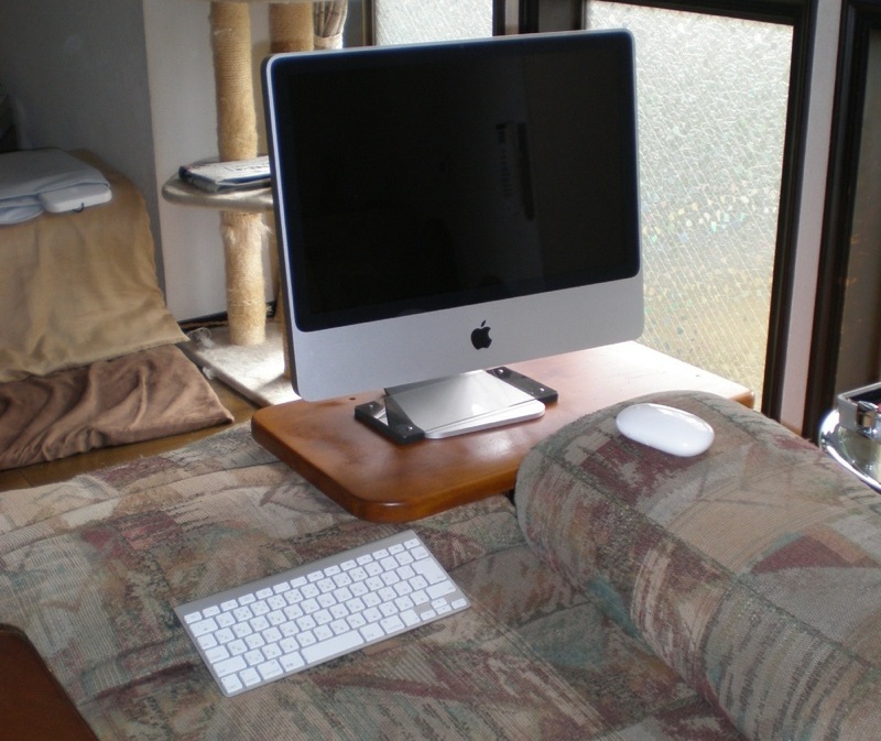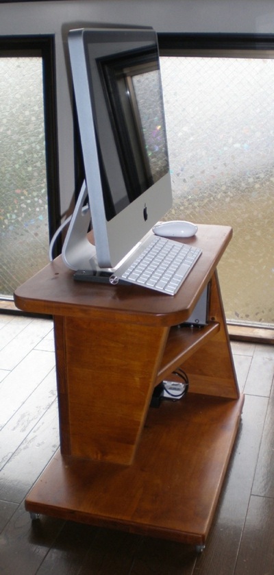 たす専用のパソコン台を造作しました。パソコンを使用しない時はソファーの脇に置いておいて、使用する時だけキャスター