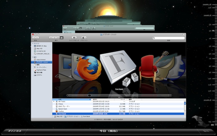 の設定を元に戻したいけど戻し方が分からなくなったことがあったので、これ幸いと早速 Time Machine を立ち上げ、iMac を最初に立ち上げた11月1日まで遡っ