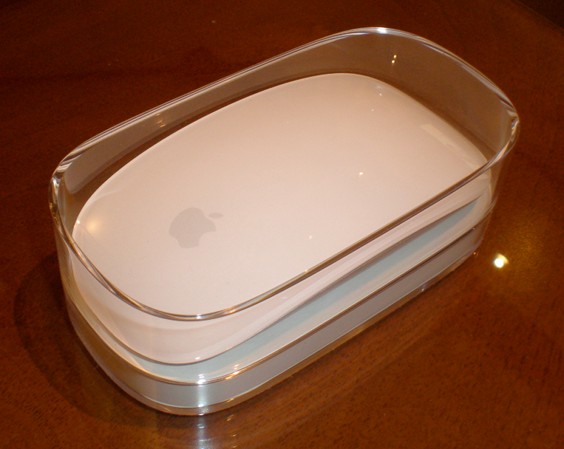 いや〜、ジャスト・サイズに設えられた秀逸なデザインのアクリル製パッケージも含めて、Magic Mouse の外観はまるで「工芸品」の域。「アルミ+アクリル」という共通したデザイン・コンセプトによる Wireless Keyboard とのシンクロ度がさらに高まり、iMac 本体と一体となったそのプロダクト・デザインの完成度は正に頂点に達した感があります。