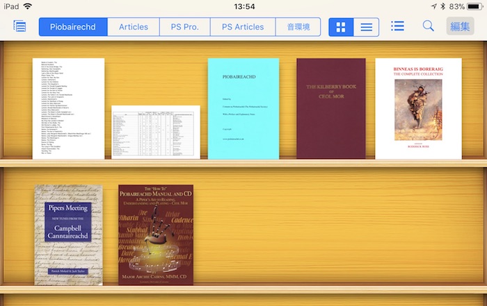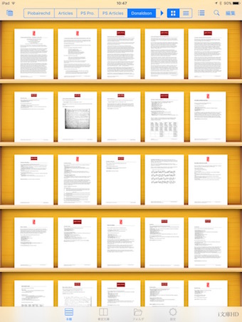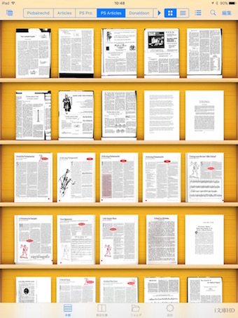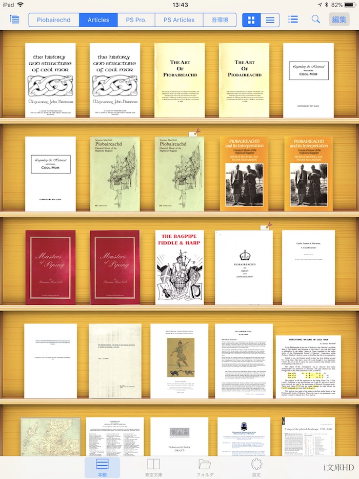 在に設定できる事。 この i文庫HD には基本的に iMac の Piobaireachd フォルダの 中身をそのままの階層で保存し、並列した5つの本棚にそれぞれの階層毎に表示される様にしています。