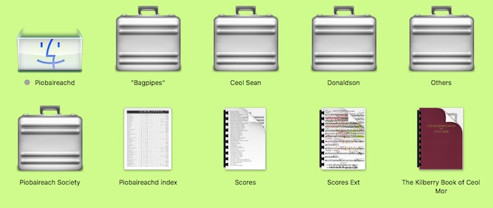 自家製デジタル版(2017年5月完成&追加) 07 "How to" Piobaireachd Manual : 自家製デジタル版 20〜25のブリーフケースのアイコンはフォルダアイコンです。それぞれのアイ コンをクリックするとフォルダが開いて次のフェーズに入ります。