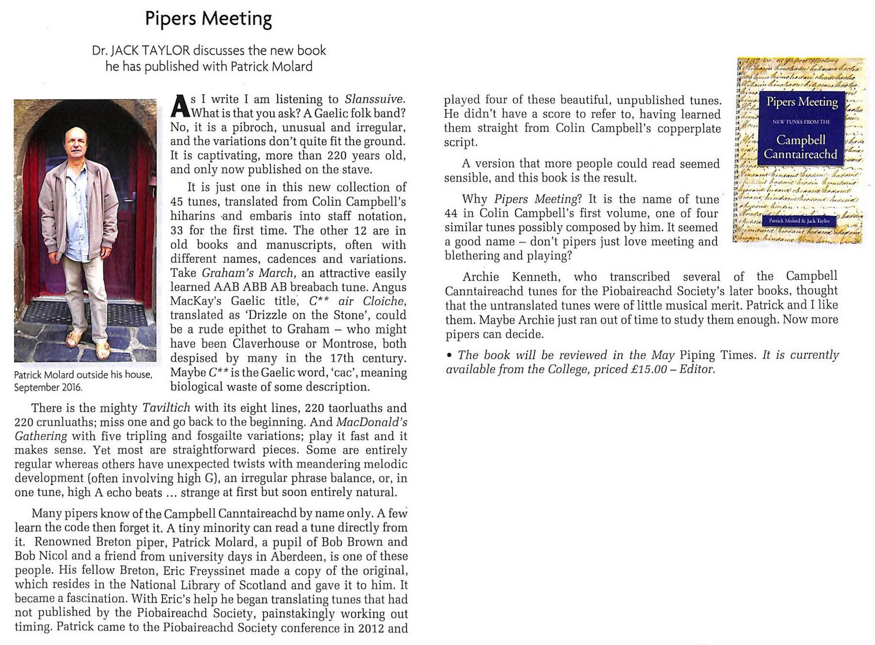Patrick Molard と Jack Taylor が Campbell Canntaireachd