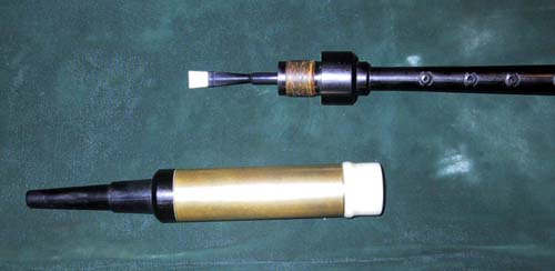 そして、その効果は絶大で、長時間吹き続けてもリードが水分で止まってしまうということは全くないという素晴しいプラクティスチャンターが出来上がったのでした。練習が終った時には、キャップを外して反対側から吹くと、吹き口からそれなりの量の水分(つまりは「だ液」って訳。きたね〜!)が出てきます。でも、日常的なメンテはそれだけで済むのです。素晴しいでしょ。