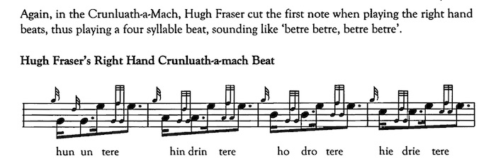この章の内容については "Piping Times" 1988年5月号 に要約して載せてあります。その顛末も含めて、そちらを参照して下さい。 ●The Canntaireachd P42