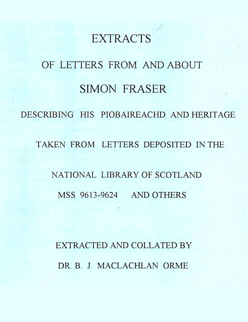 from Simon Fraser’s Manuscript and P/M