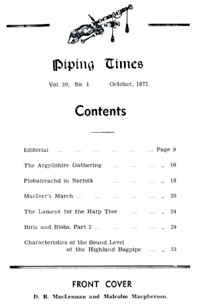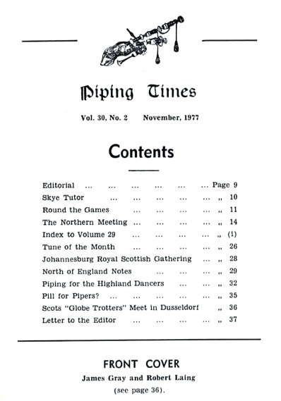 た。目次の一番下にクレジットされているように、この号の写真は、D.R.Maclennan と Malcom MacPherson のお二人です。 毎年10月号の“Piping Times”は直前の8月末に行なわれる P10 The