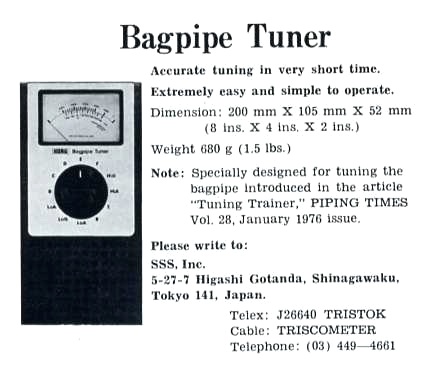 コンテンツ・ページ(P7)の前にあるいくつかの宣伝ページの中に、ある宣伝がが目に留まりました。P5 上半ページに掲載されている“Bagpipe Tuner”の宣伝です。