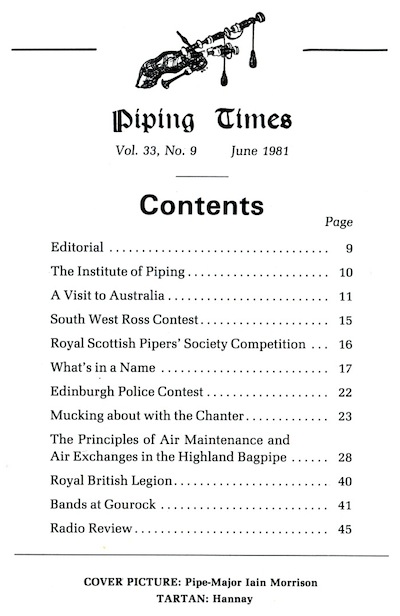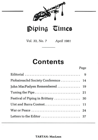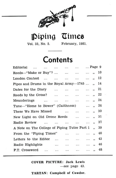 の号に掲載されています。それによると、歴史あるこのコンペティションの 1980年の結果は次のとおり。 Gold Medal コンペは 1st Tom Speirs“The Battle of Bealach nam Brog”、2nd Robert Barnes“Lament for the Departure of King James”、3rd Malcolm MacRae“Beloved Scotland”、4th Jackez Pincet“Ishbel MacKay”でした Clasp は、1st Iain