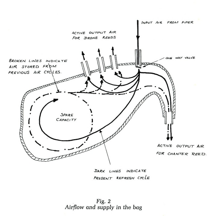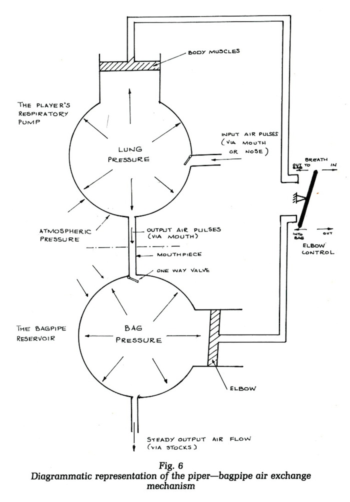 P29 The Principles of Air Maintenance and Air Exchanges in the Highland Bagpipe は6月号の記事に続く Part 2。 今回もまた、なにやら難解な記事なのですが、挿入されている図が中々興味深げなので、またまたの究極の手抜き技で、 それらを掲載してオシマイにします。