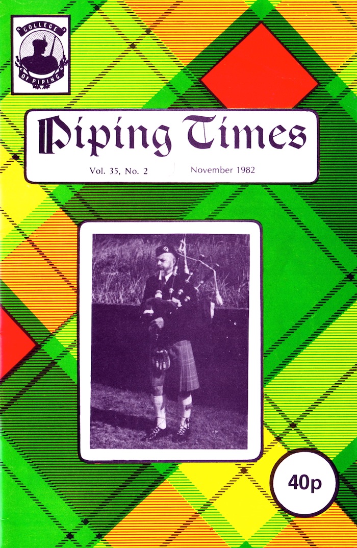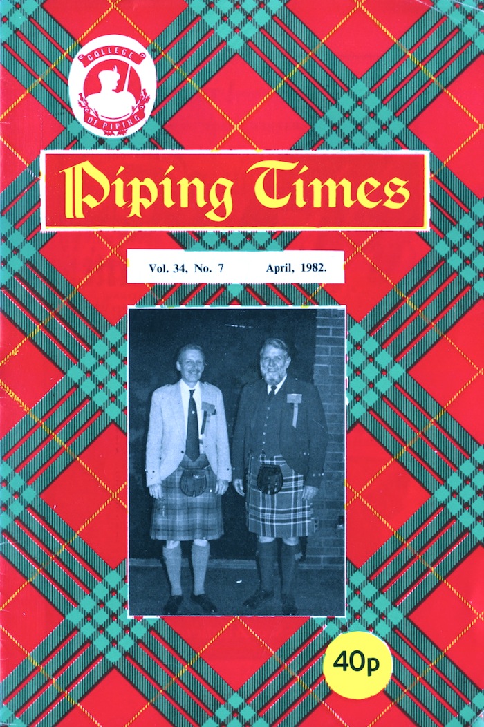 偲ぶイベントのレポート。 講演者は David Murray で、パイパー としては John D. Burgess、P/M Angus MacDonald、そして、ガーリックシンギングで著名な(パイパーでもある)Finray MacNeill によるガーリンク・シンギング が披露されたとのこと。 短い報告に続いて同じページから P9 I am proud to play a Pipe というタイトルのこの時の David Murray の 講演録が3ページに渡って掲載されています。 ちなみ、P16 Scothish Pipers' Association の この間の組織の活動報告(報告者はチェアマンの Angus J. MacLellan )の中でこの John MacFadyen Memorial Tour で演奏された曲が報告されていました。それによると、 John D. Burgess は“The Battle of Waternish”と“Lament for Ronald MacDonald of Morar” 、P/M Angus MacDonald は“Sir James MacDonald of the Isle”と“MacDougall's Gathering”を演奏したということです。