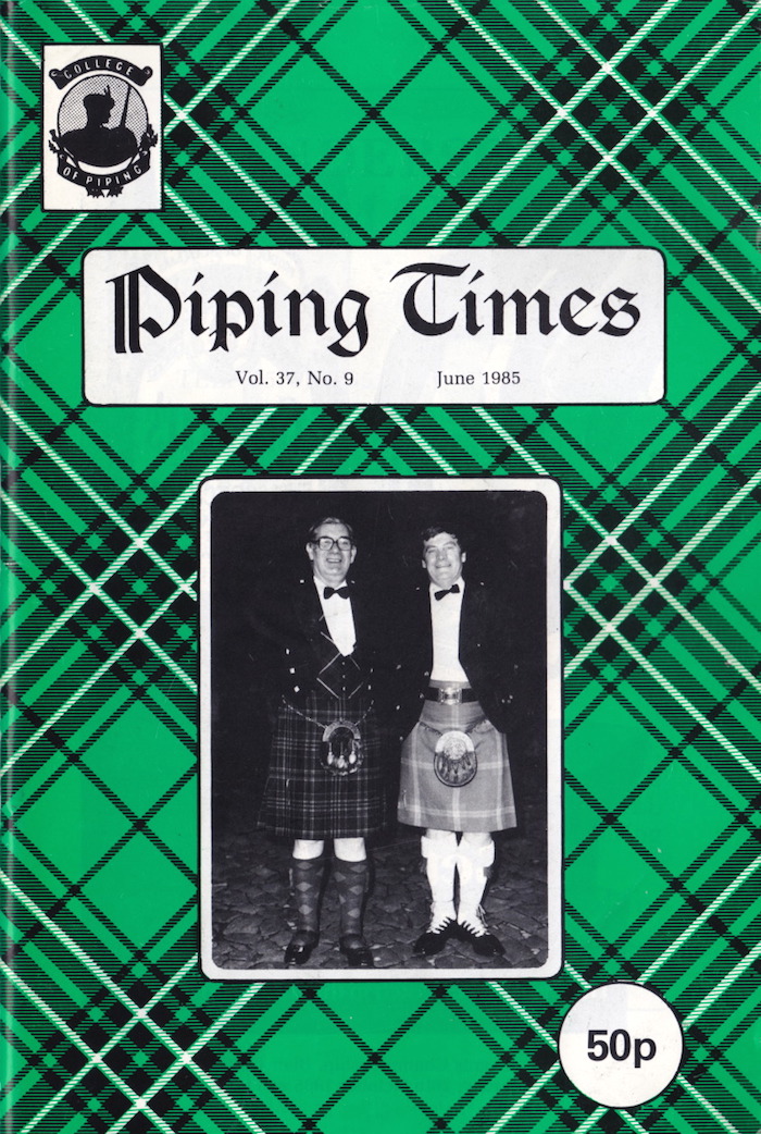を素材としていますが、そうではなくてイギリス本土で入手可能な植物で作られた例もあったようです。 また、グラスゴーに出入りする商船が積荷のクッション材として Cane を使っていたことから、実は過去100年以上に渡ってリード素材の主な供給元としてそれらが重宝されていたという興味深い話も紹介されていました。 P37 MacIntosh and Henderson は、2月以降の毎号に宣伝が掲載されている彼らの共同経営体が分裂した件に関する記事です。 詳しい経緯や年代は調べていませんが推測するところによると、ニュージーランド出身の Murray Henderson は、スコットランドに拠点を 置いてパイピング・シーンで活躍。Patricia と 結婚した後、ある時点で夫妻で米国に移住。その地で同様にスコットランドからの移住組である Jimy MacIntosh と共同でディストリビューター を立ち上げ経営していたのではないでしょうか。 この時点でこの共同経営体が分裂することになったのは、 Murray & Patricia Henderson 夫 妻が活動拠点を再びスコットランドに戻すことになったからのようです。この記事の論調としては "We in Scotland are delighted to welcome the Hendersons back again." と書かれ、「メジャー・コンペティションもさらに活況を呈するようになるだろう。」と二人の帰国を大いに歓迎している様 子が伺えます。 一方、Jimy MacIntosh はプライベー トで前年(1984年)秋に自身も優れたパイパー&ダンサーである Joyce MacFarlane と いう女性と結婚。オフィシャルには科学・工学・コンピューター・サイエンスに於ける全米の中心に位置するピッツバーグの カーネギー・メロン大学のパートタ イム・ポストに就いたということ。当然ながらパイピング・ライフも継続している訳で、公私ともに新世界での暮らしを満喫 している、と紹介されています。 P41 The Eriskay Ski Lilt