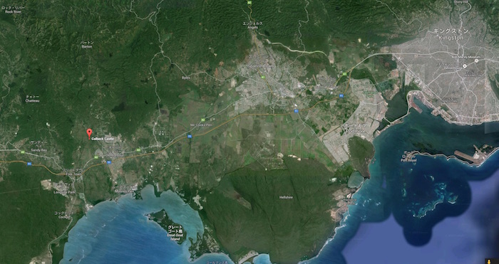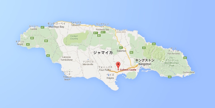 最近はどんな場所でもまずはグーグルマップで検索し、可能であればストリートビューでその場所を確認してみます。で も、今回ばかりは無理だろうな?と思いつつ、ダメ元でジャマイカ国内を検索してみると、何と直ぐに Colbeck Castle がヒットしました。