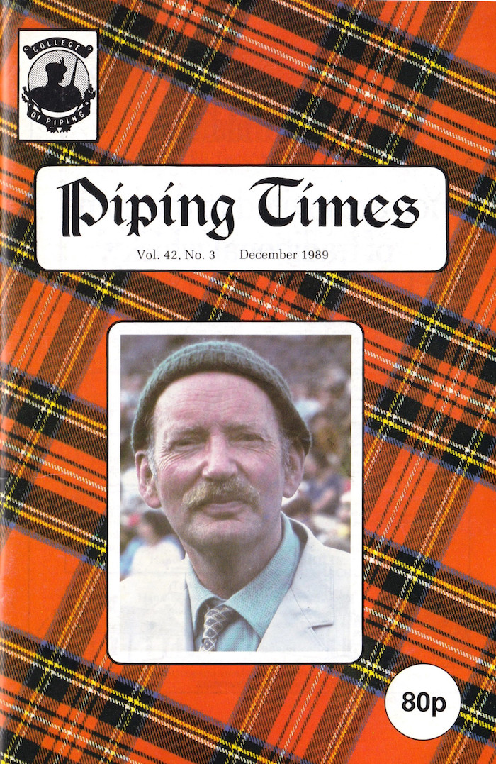 は著名なパイパーを紹介するシリーズもの(だった様な気がしますが、この前の記事がいつだったかは定かに思い出せません)。今回紹介されているのは表紙写真の Hugh A. MacCallum。 写真入りで約3ページの記事です。 冒頭で、まずこの方のコンペティション・フィールドへの衝撃的なデビューの有様が紹介されています。 それによると、1960年の The Argyllshire Gathering の Open クラスに初登場でいきなり優勝。なんと、彼はその前年にコンペティション・フィールドにデビューしたばかりの弱冠18才だっ たそうです。因みに、この時の Gold Medal クラス覇者は John MacFadyen でした。 年長の兄から最初のパイプの手ほどきを受けた彼は、その後、地元出身のパイプ・メジャーからの指導を受けますが、指導の大 きな部分は従兄弟の Ronald MacCallum から受けました。Ronald MacCallum は Duke of Argyll のパイパーとして当時のスコットランドでは最も優れたパイパーの一人でとして、広く知られたパイパーでした。 残りページの殆どを費やして1970〜80年代の様々なコンペティションに於ける Hugh MacCallum の華々しい戦歴が多々紹介されていますが、事細かに紹介しても仕方無いので割愛します。 ![]() P23 Ardvasar Seminar 1987 Part6 は1号ずれなので本当は 1988 Part7/9。この号では Tom Speirs のリードによるセット・チュー ンをテーマにしたディスカッションです。 P41 Angus MacKay's 'Specimens of Canntaireachd' は Part4 Conclusions。全48曲について、現代の曲名、それ以前のソースの 出所(A.MacKay 関連とその他別)、PS Book の該当ページ、を一覧にした表が掲載されているので↓に紹介します。本文では幾つかの曲についての細かい解説も書かれていま すが、それは割愛します。 ![]() ![]() 出所の略称は次の通り B : A Collection of Ancietn Piobaireachd or Highland Pipe Music/Angus MacKay 1938 I, II : Angus Mackay's MS Collection, volumes 1 and 2 A : Angus MacArthur MS C : Campbell Canntaireachd MS DB : A Collection of the Ancietn Martial Music of Caledonia/Donald MacDonald 1822 DM : Donald MacDonald MS DJ : MS of Donald MacDonald Junior DC : MS of Duncan Campbell ER : MS of Eliza Ross G : A Collection of Piobaireachd or Pipe Tunes as taken from John McCrummen/Neil MacLeod of Gesto 1828 J : John MacKay MS R : Peter Reid MS PS : Piobaireachd Socety Books volume and page number CM : Ceol Mor, A new and abbreviated system/G. S. Thomason |