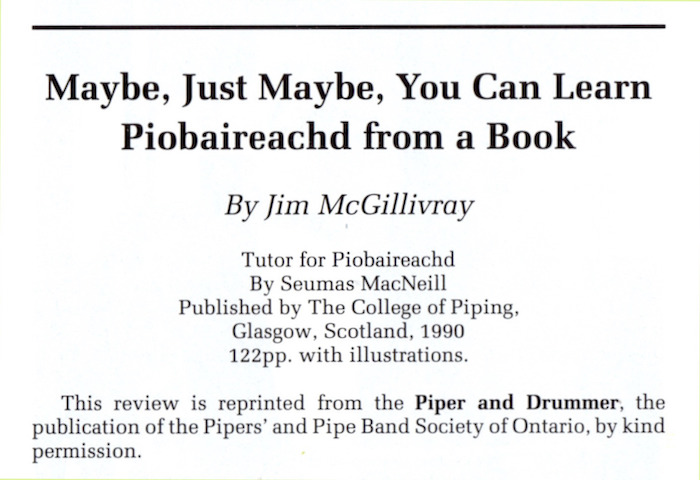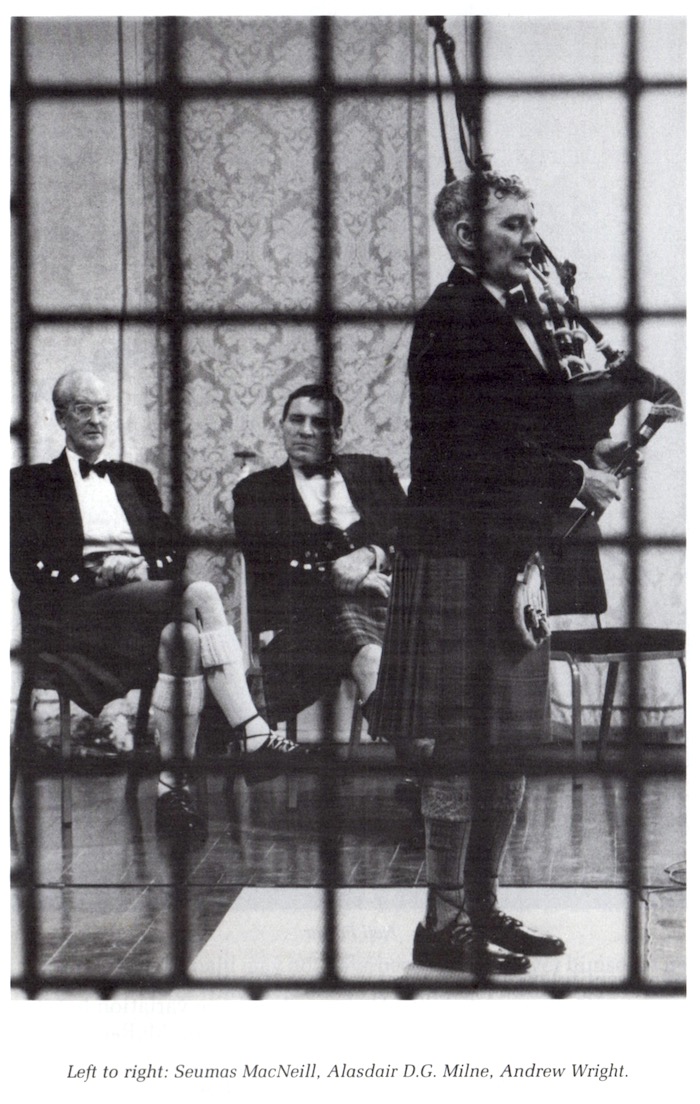 そして、どうやら "Three of the pipers this year came from the other side of the Atlantic." の一人はこの人の事を指していた様です。つまり、さすがにこの 期に及んで Murray Henderson をよそ者扱いしていた訳ではない様です。しかし、Colin の 事をわざわざ Scots-born Colin MacLellan from Maxwell, Ontario と称して、現在スコットランド在住だとしても、そもそもNZ生まれのよそ者(MH) とは違う、とでも言いたいのでしょうか? ![]() P32 Maybe, Just Maybe, You Can Learn Piobaireachd from a Book という長いタイトルの記事は、先月号でその最新教則本の中で用いたカンタックの様式について Seumas 自身が説明していた、"Tutor for Piobaireachd" に関するレビュー。書いてある通り、現在は pipes | drums という名になっているカナダのパイプ雑誌に掲載された Jim McGillivray による記事の転載です。量的には2ページ余り。 当然ですが、辛口の批評が書かれている訳が無く、耳障りの良い言葉が並びます。 中でも、私がこの教則本で最も気に入った "Piobaireachd is easier to play than macrhes, strathspeys and reels." という名言(ピーブロック名言集、パイプ のかおり第3話「ピーブロックに関するシェーマス・マックニールの言葉(その5)」)につい て、多くのパイパーがピーブロックに対して抱いているハードルの高さを拭い去る一文、として紹介し ているのが印象的です。 私が、このレビューで最も気になったのは、今となっては虚しく響く次の締め括りの一文です。 A salute to Seumas for this one. The Tutor for Piobaireachd is the latest in an impressive list of piping achievements that should rightfully garner him that long awaited M.B.E.(下線部:引用者) ハイランド・パイピングに対する貢献に対して、それまでにも多くの人が M.B.E. を授与されています。John D. Burgess 然 り、P/M Angus MacDonald や P/M Gavin Stoddart 然り。確 かに演奏技量や純粋なパイパーとしての活躍(後者2人は軍人としての功績も)等からすれば、これらの人々と は差があるでしょうが、世界中の一般人に対してハイランド・パイプ文化を広めたという功績からすれば、他の 誰よりも Seumas MacNeill が飛び抜けた存在である事は衆目一致する所。 それにも関わらず、Roderick J. MacLeod は NPC の代表になった後、ハイランド・パイプ教育機関の長としてのキャリア的には大先輩である Seumas MacNeill を追い越して M.B.E. を授与されました(パイパーとしてのレベルは前者の方がかなり上ですが…)。その時には、私は「どうして Seumas が M.B.E. とならないのだろうか?」と不思議でなりませんでした。 この締めの一文から推しても、Seumas が M.B.E. を授与される事は長い間(恐らく自他共に)大いに期待されていた事のようです。しかし、結果はご存知の通り…。 思うに、彼は成し遂げたその甚大な功績もさることながら、それ以上に多くの敵を作り過ぎたのでしょう。当 初、CoP の後継組織として構想された NPC の設立の際、関係者が間際になって初代代表の座を与えようとしなかった顛末に も、晩年の Seumas MacNeill を取り巻く状況が透けて見えます。 Seumas の愛弟子ともいうべき Jeannie Campbell(500号記念1990 年5月号表紙)は、その功績を称えられ 2014年に M.B.E. を授与されたました。その事を報じる pipes | drums の記事の中でも、その不可思議な顛末について 触れられています。20世紀パイピング・ワールドの謎 の一つと言えるでしょう。 P45 The Northern Meeting のレポートは、P26 The Argyllshire Gathering と併せてその Jeannie Campbell による記事です。コンペティションの結果は次の通り。 Gold Medal は 1st Greg wilson, NZ(The Vaunting)、2nd Alasdair Gillies(The Fingerlock)、3rd Donald MacBride, USA(My King Has Landed in Moidart)、4th Ronald MacShannon(The Blue Ribbon)、5th Eric Rigler, USA(The End of the Great Bridge)。 Clasp は 1st Alan MacDonald(The Unjust Incarceration)、2nd Alasdair Gillies(Earl of Seaforth's Salute)、3rd Murray Henderson (His Father's Lament for Donald MacKenzie)、 4th Roddy MacLeod(Craigellachie) |